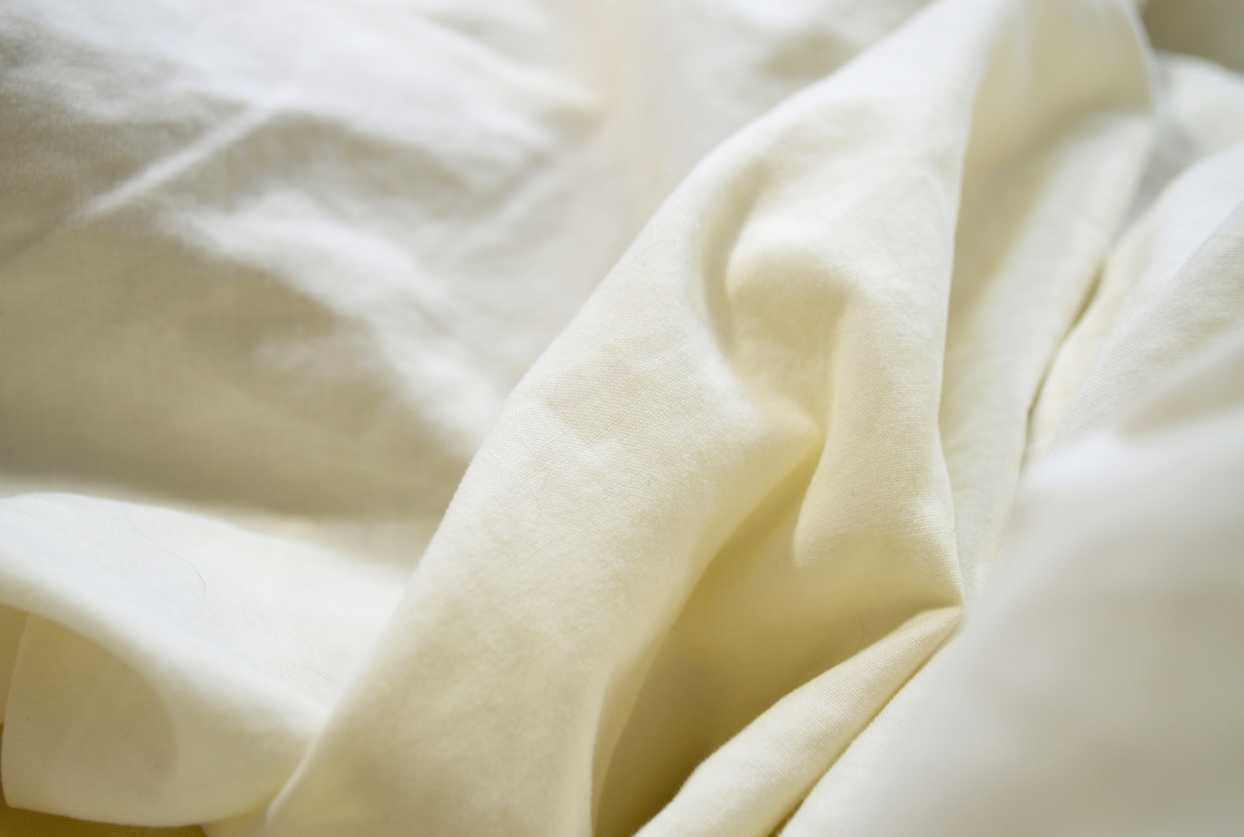 Close-up of cream-colored, soft, slightly wrinkled fabric.